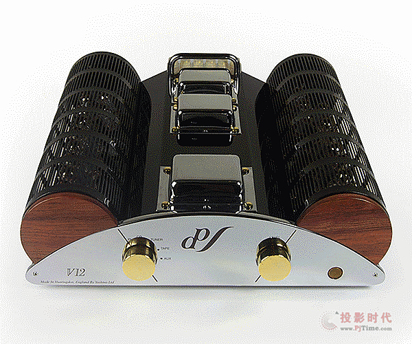 仔細觀察V12兩翼的角度,可以發(fā)現(xiàn)真空管并不是垂直的,而是斜向外張開,據(jù)EAR表示,這是參考了V12汽缸引擎的設(shè)計,讓兩側(cè)真空管形成優(yōu)美的夾角,這也是為何該款管機型號命名為V12的主因。V12一共使用了10支12AX7訊號管與12支EL84功率管,可產(chǎn)生實用的50瓦功率。