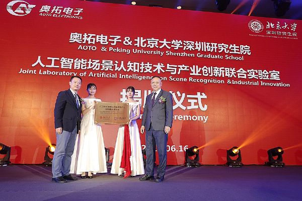 在慶典大會上,奧拓電子董事長吳涵渠先生與北京大學深圳研究生院副院長牛宏偉先生一起為奧拓電子與北京大學深圳研究生院共建的“人工智能場景認知技術(shù)與產(chǎn)業(yè)創(chuàng)新聯(lián)合實驗室”進行了揭牌。雙方的合作,將提升奧拓電子在人工智能場景認知技術(shù)領域里的實力,以支持奧拓電子的“智能+”發(fā)展戰(zhàn)略得到貫徹落實。