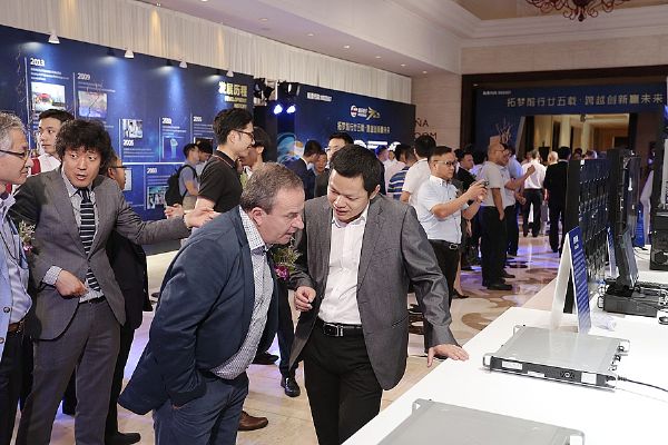 在舉行慶典大會的同時,奧拓電子還舉辦了一場新產(chǎn)品、新技術(shù)交流會,公司的Mini LED、裸眼3D、互動屏、智能服務機器人、全息展示柜、處理器等新產(chǎn)品和新技術(shù)都引起了參會嘉賓與客戶的極大關注。