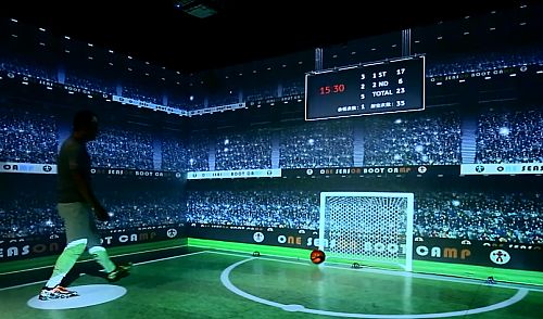 隨著人們對健康的要求不斷提高,越來越多的人開始走進(jìn)健身房,通過健身來進(jìn)行減肥、提高體能等訓(xùn)練。跑步機(jī)、啞鈴、劃船機(jī)等器械幾乎是每間傳統(tǒng)健身房的標(biāo)配,而在壹季體能訓(xùn)練營沉浸式互動健身房中,健身愛好者可以在15米*6米的小空間內(nèi)進(jìn)行足球射門、籃球投籃、羽毛球擊打等多種在傳統(tǒng)健身房中難以想象的體能訓(xùn)練。而更讓人驚訝的是,所有訓(xùn)練僅憑十臺投影機(jī)就可輕松實(shí)現(xiàn)。
