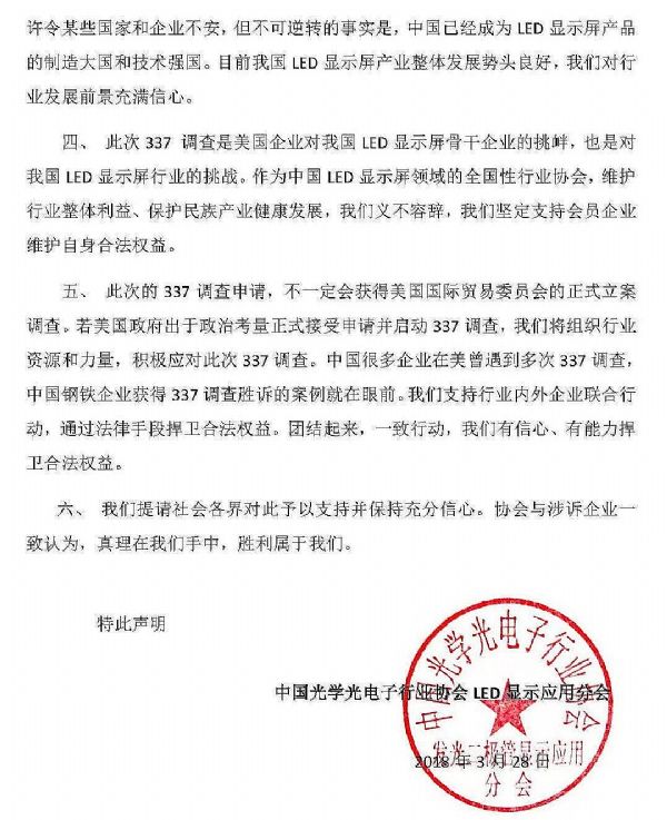 附件:中國光學(xué)光電子行業(yè)協(xié)會LED顯示應(yīng)用分會做出如下鄭重聲明: