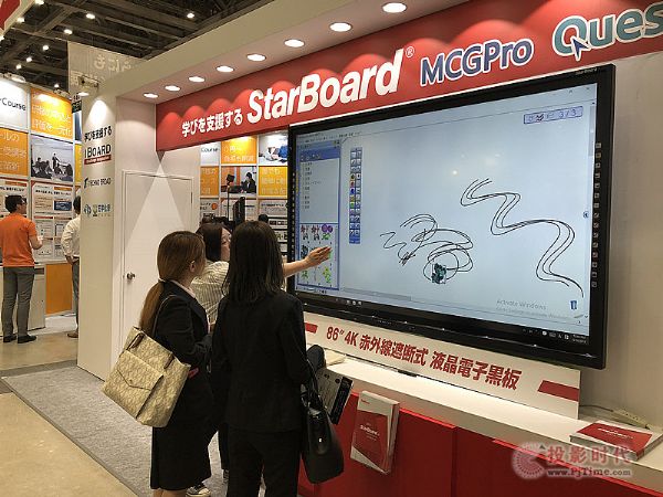 StarBoard超短焦激光投影機可以為教室?guī)砀玫膽?yīng)用環(huán)境,投射80英寸畫面時鏡頭到屏幕距離只需40厘米以內(nèi),在使用過程中投影光線不會被身體所遮擋。超高的流明度,超長的光源壽命,吸引眾多客戶前來了解。同時通過白板互動軟件,搭配StarBoard 87寸電容白板組合而成的教學(xué)方案,讓整個教學(xué)過程變得更加愉悅,給大家前所未有的體驗。