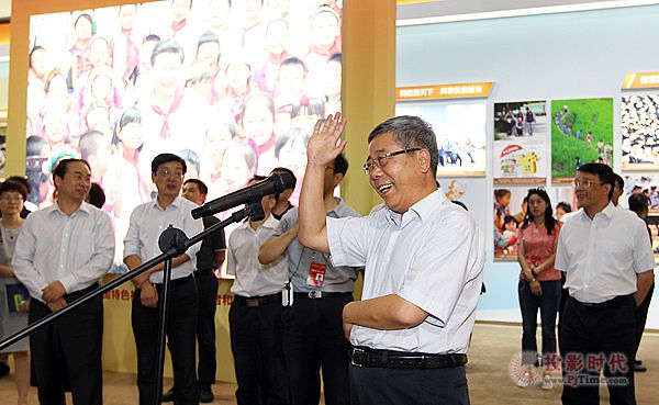 圖為陳部長參觀學(xué)校校園環(huán)境