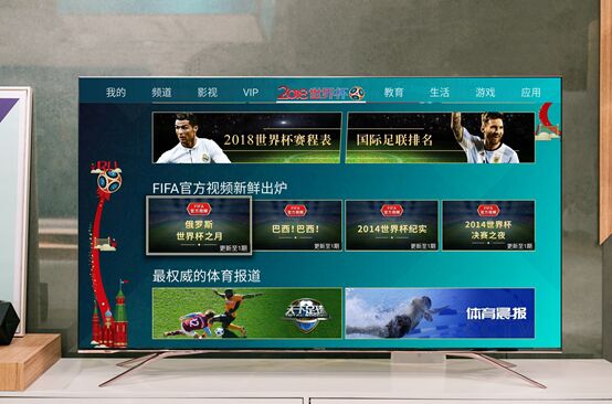 海信AI電視系統(tǒng)在科技上做到了足夠“黑”,內(nèi)容配置上也同樣獨一無二。作為2018俄羅斯官方贊助商,海信擁有國際足聯(lián)的多項獨家內(nèi)容授權(quán),在聚好看平臺上開發(fā)的“世界杯頻道”,不僅覆蓋了央視世界杯黃金視頻資源,還有FIFA官方授權(quán)的獨家HDR賽事專區(qū)以及不間斷更新的60多檔自制節(jié)目,基于AI大數(shù)據(jù)的“千人千面”技術(shù),可以讓每個人都擁有一個專屬于自己的“世界杯頻道”。