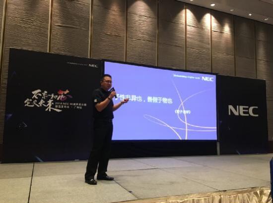 NEC(中國(guó))有限公司顯示產(chǎn)品解決方案事業(yè)部總經(jīng)理李帑現(xiàn)場(chǎng)發(fā)表致辭