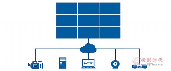 傳統(tǒng)的大屏拼接系統(tǒng)中,拼接屏只是作為顯示終端。要實(shí)現(xiàn)拼接功能,拼接器、矩陣等設(shè)備必不可少。所有信號必須通過各種編解碼器或長傳設(shè)備匯聚到屏端,從而實(shí)現(xiàn)復(fù)雜信號的接入。多設(shè)備間的聯(lián)調(diào),復(fù)雜的布線,獨(dú)立的拼接,使其已經(jīng)難以應(yīng)對網(wǎng)絡(luò)時(shí)代下用戶新生的創(chuàng)新性需要。