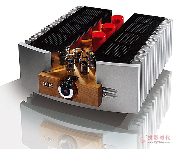 最后,INPOL2的美麗外觀不可不提。整塊實木的前面板居中并向后延伸,鑲著一顆鍍鉻音量旋鈕,當(dāng)中則是液晶屏幕,以紅色字體顯示當(dāng)前音量。在這一條木質(zhì)走道上立有四根前級的真空管,以及后面四科醒目的紅色電容。兩側(cè)是放大線路,緊靠在功率晶體之外的是散熱片,不過,Pathos在INPOL2的散熱片上做了手腳,散熱片蝕刻出Pathos的商標(biāo)字樣,不僅美觀,而且還增加了散熱面積,提高散熱效率。