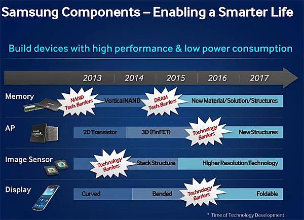 盡管是這樣,柔性終端產品的生產也正在面臨重重挑戰(zhàn),2015 年,三星在公布 Project Valley 項目新線路圖時,表示其可折疊屏幕在研發(fā)過程中技術上碰到了障礙,該項目的第一款機Galaxy X 還要再等等。在實現(xiàn)柔性終端產品的道路上,除了屏幕的折疊以外,手機內部元器件,比如觸摸屏、偏光片、電路板、電池也需要適應可折疊屏幕的要求。