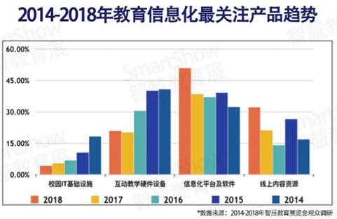 2014年起,SmartShow國際智慧教育展對歷屆共15萬參會的觀眾進行了這4個維度最關(guān)注的產(chǎn)品趨勢調(diào)研。