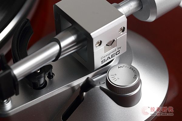 TN-3B的唱臂采9吋S型臂管、刀鋒軸承,可調(diào)整抗滑,VTA不可調(diào),唱頭蓋為活動式,可輕松更換唱頭。TN-3B隨盤已附有audio-technica的AT-VM95E MM唱頭,而且唱頭都已裝妥于通用型唱頭蓋上,并經(jīng)精準調(diào)校,安裝時只要將唱頭蓋鎖上,調(diào)好針壓即可播放。TN-3B的啟動/關(guān)閉與轉(zhuǎn)速控制都在盤身右側(cè)唯一的旋鈕上,0是停止,轉(zhuǎn)到33立即啟動至33 1/3轉(zhuǎn)速,轉(zhuǎn)到45則為45轉(zhuǎn),使用上非常方便。TN-3B的馬達位在盤身左上角,透過一條扁平皮帶連動轉(zhuǎn)盤。馬達上方并附了一個圓蓋,可將pulley整個罩住,可讓外觀看起來更為平整簡潔,設(shè)計十分細心。轉(zhuǎn)盤采用鑄鋁盤,而非一般便宜的塑料盤。此外,隨附的壓克力透明防塵上蓋也是可拆的,平常不聽的時候可蓋上,聆聽時再將防塵蓋取下,以避免震動產(chǎn)生諧振影響聲音。