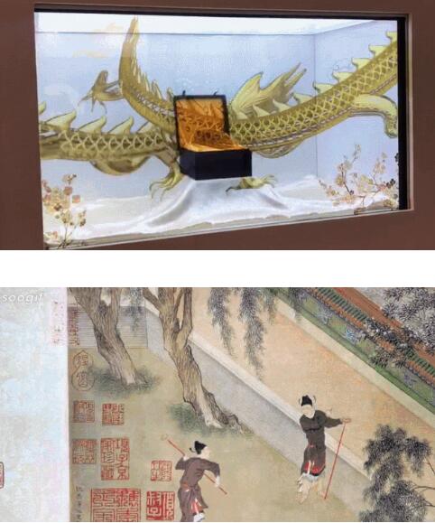 在110英寸8K超高清顯示屏上,細(xì)膩逼真的呈現(xiàn)著明代繪畫(huà)大師仇英的歷史名作,通過(guò)文博互動(dòng)系統(tǒng),參觀(guān)者可以在移動(dòng)終端上放大每個(gè)畫(huà)面細(xì)節(jié),無(wú)論是植物枝葉的紋理,還是畫(huà)作人物的一顰一笑,都栩栩如生地展現(xiàn)在眼前,極具視覺(jué)震撼力。