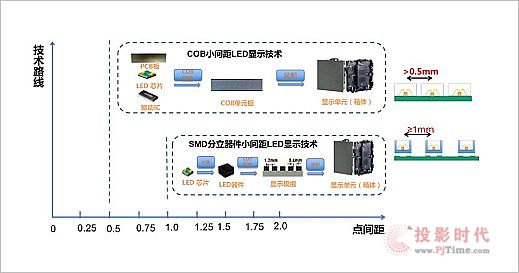 SMD小間距顯示與COB微間距顯示能實現的點間距范圍比較