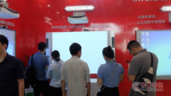 艾博德白板一體機搭配超短焦激光投影機組合而成的多媒體教學(xué)方案,引起了現(xiàn)場嘉賓的濃厚興趣。多媒體一體機集合電子白板、投影、功放、音響、電腦、視頻展臺、中控、麥克風(fēng)等多媒體設(shè)備功能于一體,滿足現(xiàn)代教學(xué)應(yīng)用需求,一舉解決當(dāng)前多媒體教室各種設(shè)備分散、連接雜亂、操作繁瑣、設(shè)備協(xié)調(diào)與兼容性差等問題。