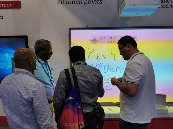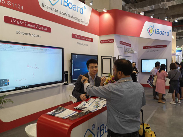 iBoard最新款 90”交互式電子白板同時支持20點(diǎn)觸控,搭配純激光光源的超短焦激光投影機(jī),色彩逼真艷麗、明亮清晰,節(jié)能環(huán)保無毒無害,使用壽命高達(dá)20000小時,不存在更換燈泡光源的問題,高效防塵,更加穩(wěn)定耐用,更易于安裝、管理。各種硬件搭配DrawView白板教學(xué)軟件、大小屏互動軟件等組合而成的智慧教育教學(xué)環(huán)境更是吸引現(xiàn)場觀眾紛紛前來體驗(yàn),不少客戶都表示艾博德的產(chǎn)品操作簡便,界面友好,相比同類教育產(chǎn)品更貼近實(shí)際需求!