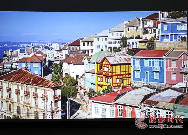 每棟房子的顏色都能清晰的表現(xiàn)出來,藍色天空也十分純正,給人的觀影舒適度很好。