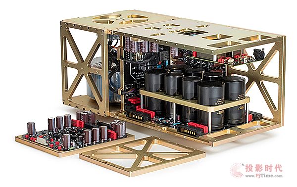 MSB M500單聲道后級,誠如其名,每聲道對應8歐姆負載下有500W輸出,對應于4歐姆音箱功率輸出倍增為1000W。M500采用純A類的分砌式輸入級,配上無整體負反饋的線路,能以達到最低噪訊和失真的目的,并且兼顧最大的動態(tài)表現(xiàn)范圍。模塊化的設計,讓M500從電源供應、輸入級、輸出級構成一個整體,以純銅車削的框架固定成立方體,藉由純銅框架強化結構并助于散熱。電源供應采用了訂制的大型環(huán)形變壓器,低噪音且電流輸出高,奠定M500強勁輸出的基礎。