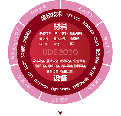 UDE2020主要展示顯示行業(yè)最核心的裝備、材料與工藝制程,如:玻璃/偏光片/液晶材料/光學(xué)膜/IC/靶材/OLED材料/掩膜版/濕化學(xué)品等材料,激光/清洗/檢測/蝕刻/沉積/蒸鍍/曝光/顯影/搬運(yùn)等設(shè)備。透過設(shè)備和材料的創(chuàng)新,我們可以看到未來3-5年顯示行業(yè)的新變化,同時對了解全球最新技術(shù)動向,新技術(shù)引進(jìn)及應(yīng)用推廣有著重要的影響。