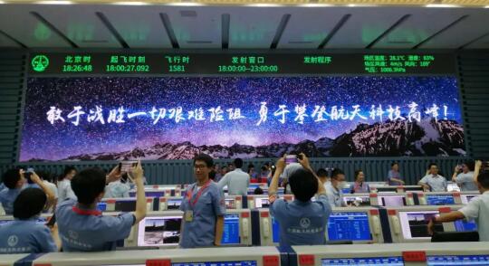 發(fā)射成功后,海南文昌航天發(fā)射場測發(fā)大廳的屏幕上打出這樣一行字: