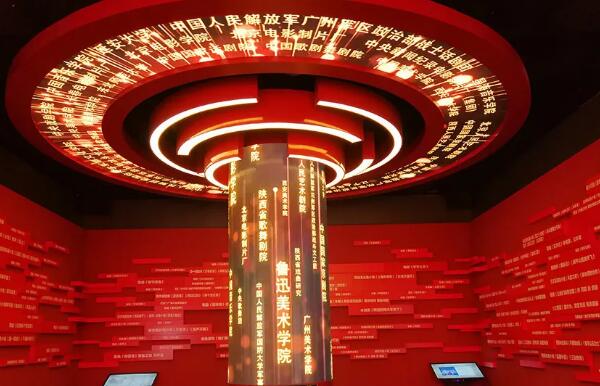 為了給廣大延安文化愛(ài)好者的游客呈現(xiàn)沉浸式的觀展體驗(yàn),深德彩作為文藝館LED顯示項(xiàng)目的承建單位,為延安文藝紀(jì)念館定制了300平方米的小間距顯示屏,以T形屏,圓柱異形屏以及五面組合屏展現(xiàn)方式增加了互動(dòng)體驗(yàn)項(xiàng)目,以更鮮活的方式將歷史呈現(xiàn)給大眾,這也是延安文化館提升游客觀感、傳遞革命精神的又一重大舉措。