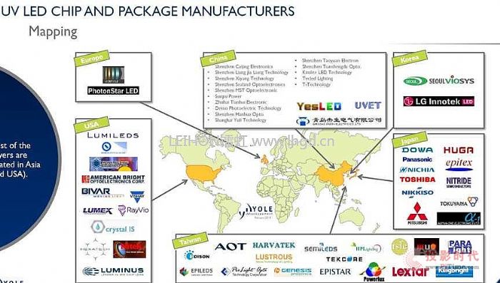 圖十二世界UV LED制造商分布圖