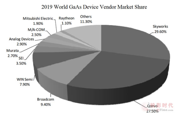 而據(jù)上市公司穩(wěn)懋2019年年報(bào)中轉(zhuǎn)引Strategy Analytics的研究報(bào)告,2019年全球砷化鎵組件市場(chǎng)(含IDM廠之組件產(chǎn)值)總產(chǎn)值約為85.44億美元,較2018年88.7億美元衰退3.7%,主要是因?yàn)?019年整體手機(jī)出貨量的衰退。