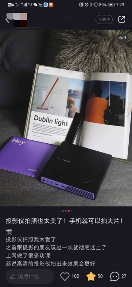 同時(shí),極米MOVIN瞄準(zhǔn)自己產(chǎn)品的目標(biāo)用戶,用年輕人更喜歡的方式和大家對話,沒有選擇常規(guī)的品牌兩微一抖的形式,而是在B站和微博上架起陣地。與B站多位百大UP主和圈內(nèi)知名的UP主合作,不管是愛學(xué)習(xí)的UP主還是資深科技咖,極米MOVIN都在不斷找到有趣的人一起玩起來。不僅在B站上被各路大咖點(diǎn)名,在顏值擔(dān)當(dāng)?shù)男〖t書上也掀起了一眾愛美的愛生活的達(dá)人的翻牌,用投影賦予生活更多小確幸,已經(jīng)成為熱愛生活的白領(lǐng)必備技能。