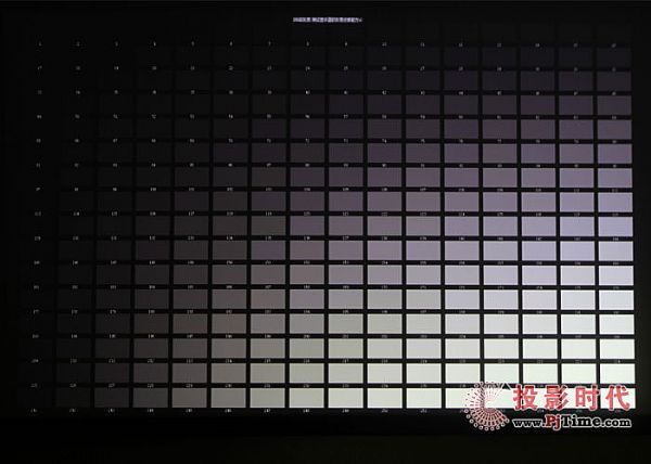得益于高對(duì)比度,索諾克SNP-UW380C超短焦激光投影機(jī)在256位灰階測(cè)試中,可以做到每個(gè)分區(qū)都能清晰的分辨出來(由于受拍攝環(huán)境及拍攝器材的影響,圖片效果無法全部區(qū)分出256位灰階,實(shí)際顯示效果能做到全部區(qū)分)。