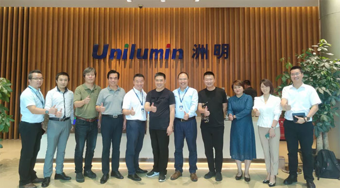 洲明集團(tuán)總裁辦主任梅志敏、洲明學(xué)堂副校長潘利強(qiáng)、公共關(guān)系事務(wù)部總監(jiān)肖華熱情接待來訪嘉賓一行。