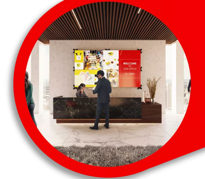 在企業(yè)接待廳,屏幕內(nèi)容主要是為了彰顯企業(yè)品牌信息。您可能主要是想通過(guò)導(dǎo)航圖或標(biāo)牌,讓訪客了解公司的準(zhǔn)則和規(guī)定;通常也會(huì)展示引人注目的企業(yè)視頻或震撼人心的背景這類社交媒體信息、儀表板、品牌營(yíng)銷材料和活動(dòng)等信息。