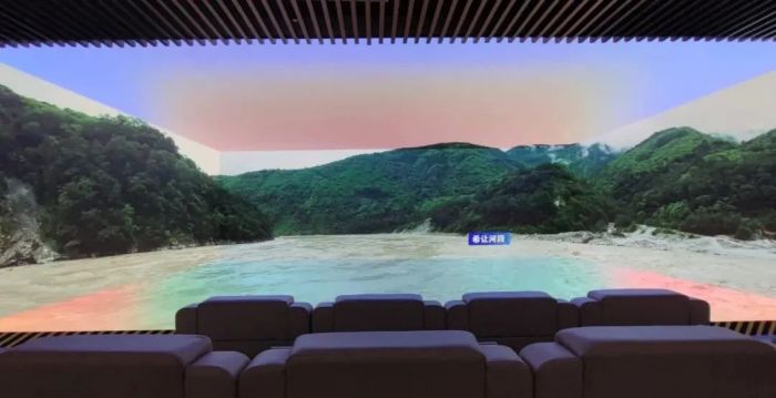 當訪客步入展廳成都(溫江)數(shù)字展廳,仿佛走進了另一個世界:雅魯藏布江在眼前奔流,湍急的河水直沖面門;畫面切換,周圍的青山突然拔起,江上的水電站纖毫畢現(xiàn),運送木船的船只緩緩穿行……專題歷史、藝術人文、科學科普等板塊內容以鮮活、趣味的姿態(tài),以高科技五面屏為立體顯示窗口,躍入訪客眼簾、走進心里。