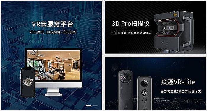 公司主要產(chǎn)品有3D Pro掃描儀、VR-Lite全新輕量化3D空間拍攝方案、VR云服務(wù)平臺(tái)、線上虛擬空間等產(chǎn)品。面向VR看房、家裝家居、云展廳、數(shù)字文旅、場景購、工廠建筑等提供行業(yè)解決方案。