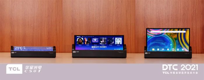 14" 噴墨打印OLED卷軸屏,可以自由變換多種形態(tài),數(shù)字顯示鬧鐘、音樂播放器、顯示器,多種應(yīng)用形態(tài)無縫切換,完美融入家居場(chǎng)景中,盡顯柔性O(shè)LED顯示的魅力。它的卷曲半徑<R20mm,在高溫高濕條件下,卷曲壽命高達(dá)10萬次,再配合自發(fā)光高精度噴墨印刷工藝制備技術(shù),以及內(nèi)置的AI補(bǔ)償算法,可以使它的畫面色彩更加明艷通透,顯示效果也得到了大幅提升。該產(chǎn)品目前由TCL華星跟日本JOLED合作推出。