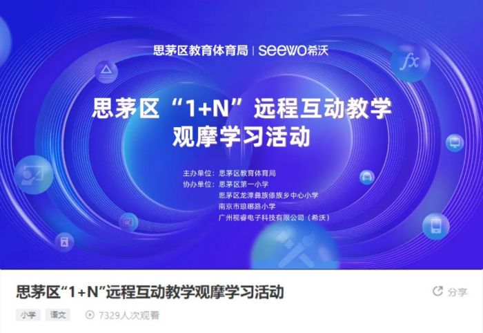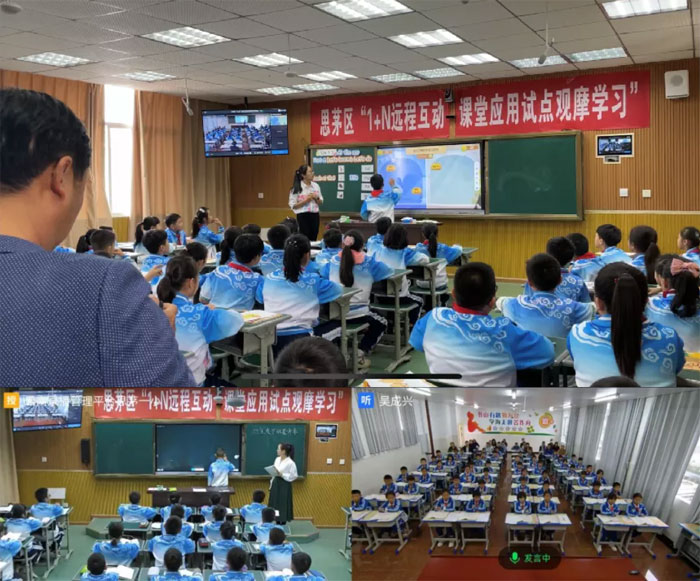 本次觀摩學習活動主要以“希沃公益行-千里共課堂計劃”為背景,設(shè)置了建設(shè)規(guī)劃、互動教學觀摩、總結(jié)展望等活動版塊,依托希沃“1+N互動課堂”信息教育技術(shù)系統(tǒng),讓來自思茅區(qū)第一小學的師生與龍?zhí)缎W的師生能通過網(wǎng)絡(luò)“共聚一堂”完成三堂遠程同步觀摩課。同時,此次活動還邀請到了南京市瑯琊路小學一同交流學習,真正推進教育幫扶的進度。為確!1+N互動課堂”推進的統(tǒng)籌性、高效性,在前期已對學校教研教務(wù)、電教老師等進行了統(tǒng)一性、系統(tǒng)性部署與業(yè)務(wù)培訓。