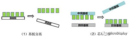 巨量轉(zhuǎn)移技術(shù)流程分為基板分離和晶片取放兩個(gè)關(guān)鍵制程: