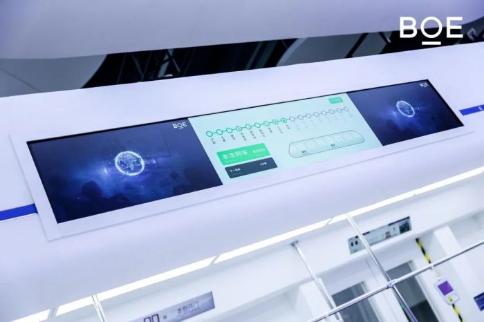 這款產(chǎn)品還可搭載于地鐵車廂門(mén)上,使車門(mén)成為高清炫彩的智能顯示端口,在保持原有的外觀和通透性的同時(shí),創(chuàng)造出新的信息廣告展示形式。