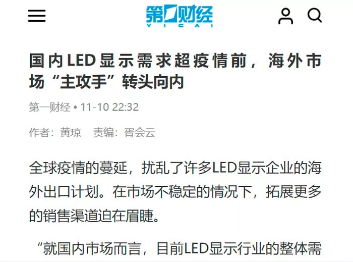 國內(nèi)LED顯示需求超疫情前,海外市場“主攻手”轉(zhuǎn)頭向內(nèi)