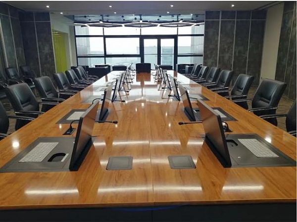 無紙化會(huì)議室采用了40臺(tái)15.6英寸 與17臺(tái)17.3英寸 GAMUT無紙化升降終端 。無紙化系統(tǒng)使會(huì)議舉辦單位節(jié)省紙本及人力資源,真正實(shí)現(xiàn)了環(huán)保 、節(jié)能 、無紙化 、高效 、互動(dòng)式 的智能電子會(huì)議模式。