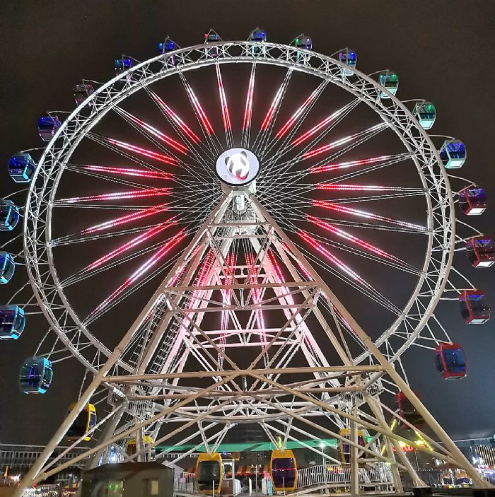 采用定制化設計的P4雙面摩天輪屏,位于摩天輪正中心的正反兩面,遠距離觀看美輪美奐,配合上摩天輪上的燈帶,呈現(xiàn)出精美絕倫的視覺沖擊力。