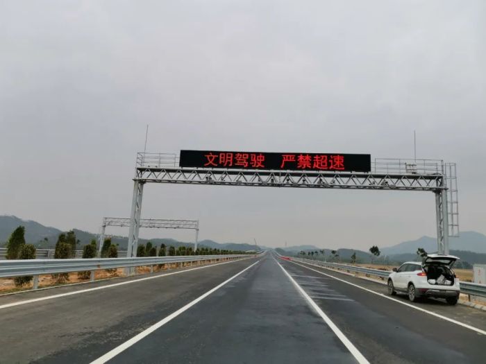 12月,新升級的陽茂高速采用雙向八車道標(biāo)準(zhǔn)改擴建,路基寬度由原來的28米增加到42米,通行時速120公里/小時,車輛通行能力顯著提高。為保障司乘行車安全,元亨交通屏在這高速中發(fā)揮著重要作用。