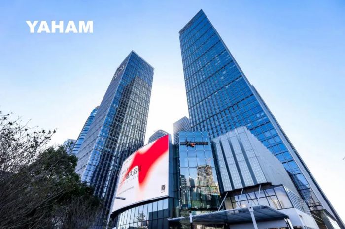 同月,大族元亨為深圳萬象前海打造了兩塊戶外LED顯示屏。一塊總面積為193.64㎡,另一塊總面積達(dá)到444.596㎡,是萬象城最大的LED顯示屏,兩塊屏幕與大樓設(shè)計相匹配,引領(lǐng)著屏顯藝術(shù)與建筑相融合的審美藝術(shù)新風(fēng)尚。