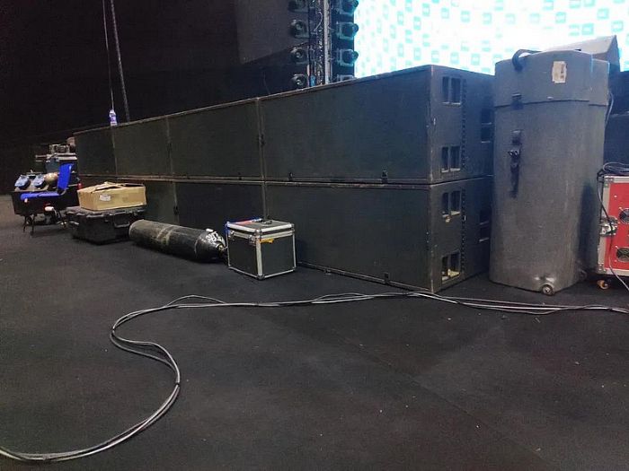 側(cè)補音箱和前區(qū)補聲音箱皆使用K1,側(cè)補音箱共使用20只K1組成兩串線陣列吊掛,前區(qū)補聲音箱使用8只K1落地擺放,為前區(qū)大部分區(qū)域的觀眾提供足夠的聲音能量。K1作為擴聲行業(yè)的基準(zhǔn),優(yōu)越的覆蓋能力是大型場館或戶外擴聲的首選。