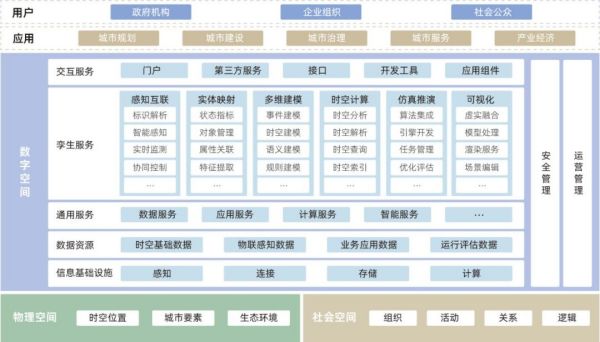 城市數(shù)字孿生是對(duì)物理空間以及社會(huì)空間中的物理實(shí)體對(duì)象、事件對(duì)象以及關(guān)系對(duì)象進(jìn)行數(shù)字空間的虛擬表達(dá)以及映射,通過(guò)信息基礎(chǔ)設(shè)施的轉(zhuǎn)化傳輸以及處理形成數(shù)據(jù)資源,在通用服務(wù)能力的支撐下進(jìn)一步融合數(shù)字孿生技術(shù)形成能夠?qū)ν馓峁┑臄?shù)字孿生服務(wù),并通過(guò)交互服務(wù)實(shí)現(xiàn)與上層應(yīng)用場(chǎng)景的融合。同時(shí),需提供立體化安全管理以及全生命周期的運(yùn)營(yíng)管理,保障數(shù)字空間各類資產(chǎn)以及服務(wù)的安全高效運(yùn)行。