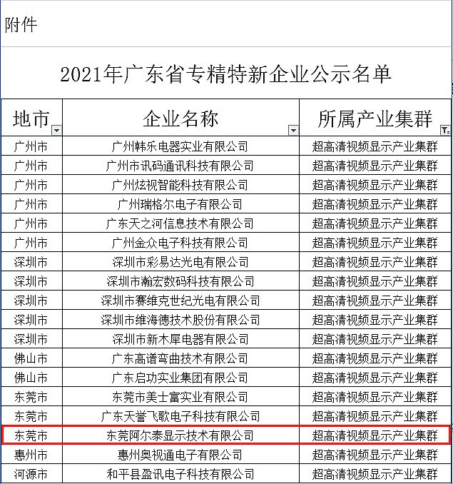 東莞阿爾泰顯示技術有限公司2021年度榮譽盤點(按時間先后排列)