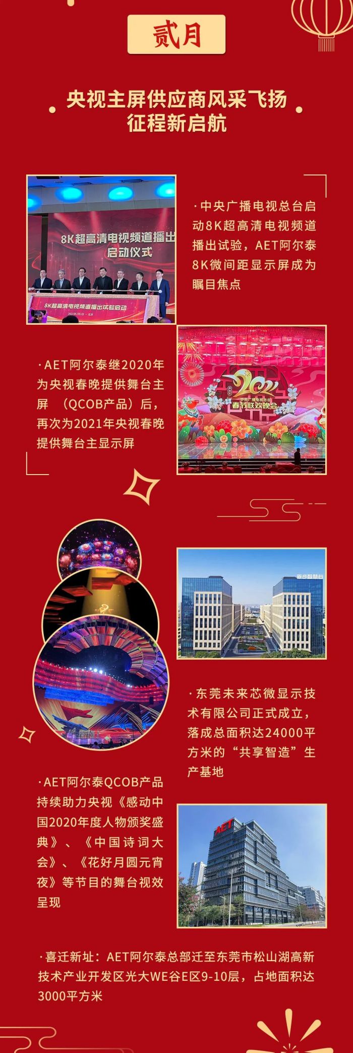 AET阿爾泰繼2020年為央視春晚提供舞臺(tái)主屏(QCOB產(chǎn)品)后,再次為2021年央視春晚提供舞臺(tái)主顯示屏