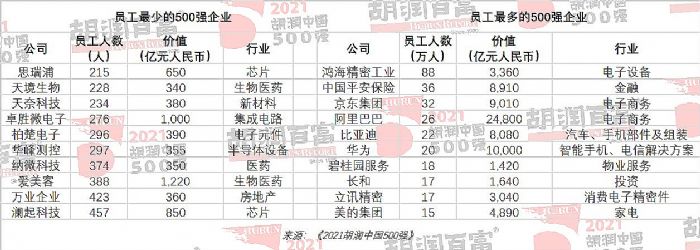 2021胡潤中國500強(qiáng)榜半導(dǎo)體行業(yè)上榜企業(yè)排行榜