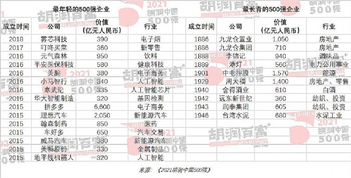 2022年1月19日,胡潤研究院發(fā)布《2021胡潤中國500強(qiáng)》(Hurun China 500 Most Valuable Private Companies 2021),列出了中國500強(qiáng)非國有企業(yè),按照企業(yè)市值或估值進(jìn)行排名。上市公司市值按照2021年11月19日的收盤價計(jì)算,非上市公司估值參考同行業(yè)上市公司或根據(jù)最新一輪融資情況進(jìn)行估算。
