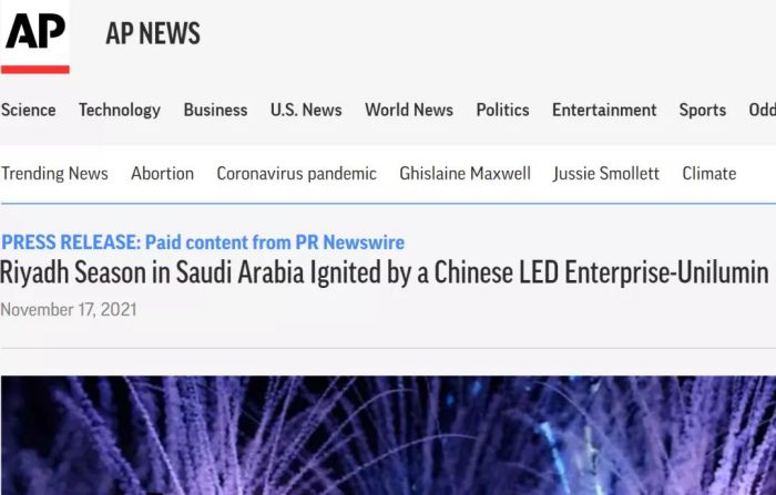 ▲美聯(lián)社報道沙特Riyadh Season(由中國洲明科技出品)