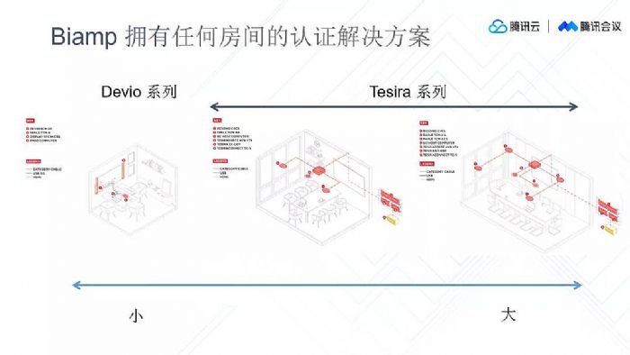 為了優(yōu)化生產(chǎn)效率,Biamp的產(chǎn)品為各種尺寸的會議空間提供了無縫的視聽體驗。為企業(yè)創(chuàng)造了靈活的工作空間,使人們能夠高效地工作和清晰地交流。通過提供高質(zhì)量的連接和協(xié)作體驗,幫助企業(yè)在解決后疫情時代之下的辦公場景中的難題。獲得證書的TMS-01套裝與TMS-02套裝都包含為中小型(30平方米以內(nèi))或者中大型房間(60平方米以內(nèi))的不同設(shè)備配置。