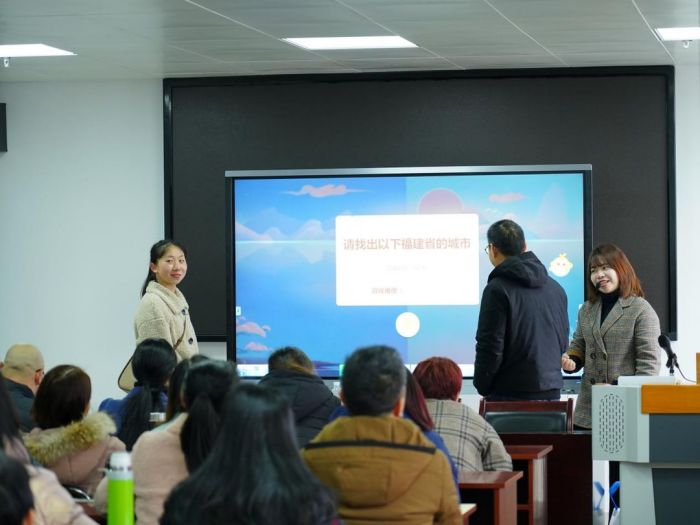 隨后,在這過程中,為了讓老師們更深入地了解希沃白板的不同使用方法,李老師還發(fā)起了課堂互動環(huán)節(jié),讓參訓(xùn)老師如學(xué)生一樣參與課堂活動,體驗智慧課堂的趣味性。