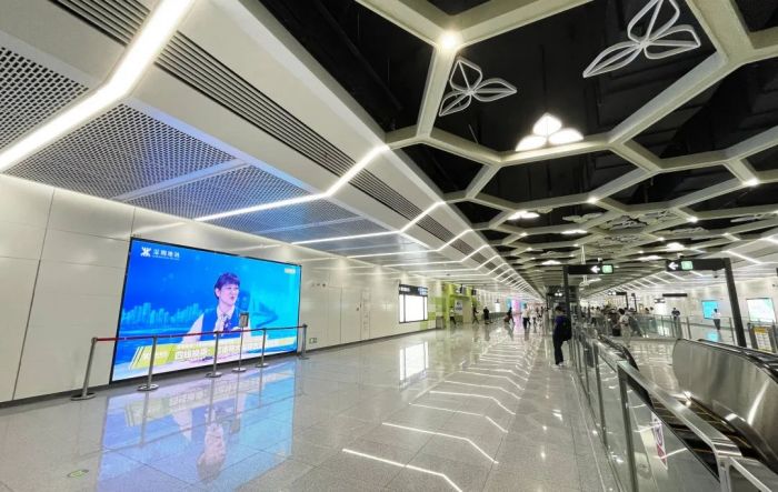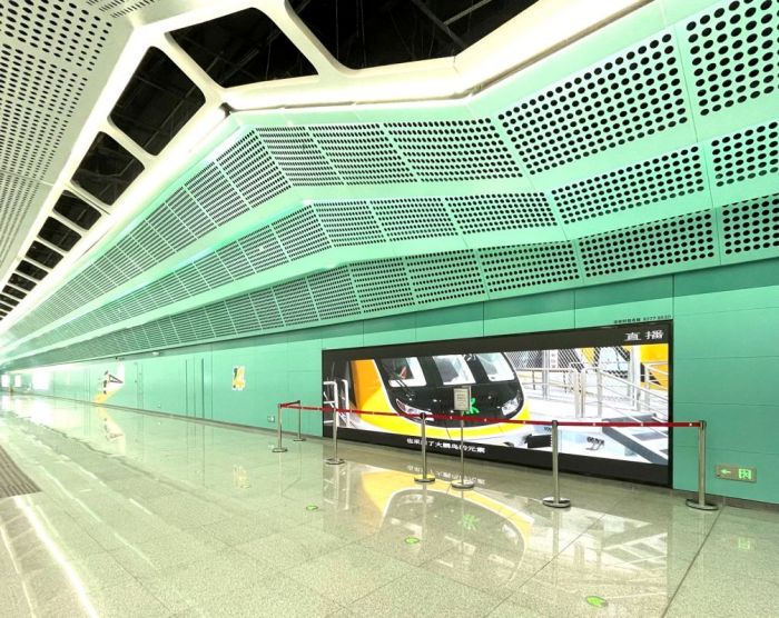 聯(lián)建光電打造的輕薄大屏不僅“有顏”,還“好用”。高效散熱性能讓乘客近距離觀看也不會產(chǎn)生不適熱感;真空鍍膜、IP65戶外防護等技術(shù)讓大屏在人流量大的地下環(huán)境中依然持久運行。同時采用Vmini微間距顯示技術(shù),全倒裝COB封裝,成就超高清畫質(zhì),絕佳的屏幕位置也極易吸引乘客注意,“吸睛”的同時也“吸金”。地鐵項目復(fù)雜,地下施工環(huán)境惡劣,聯(lián)建光電派出專業(yè)工程師實地勘查、確認(rèn)點位、現(xiàn)場安裝,以保項目順利完成。
